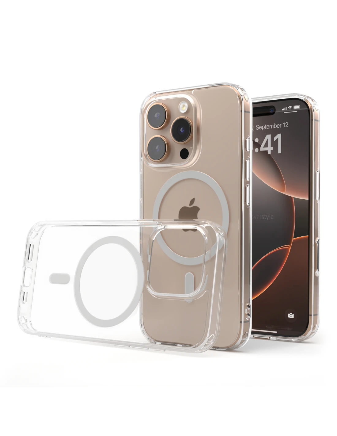 UltraFlex PRO® di CoverStyle, la prima Custodia Trasparente con Supporto MagSafe che protegge tutti i bordi del vostro telefono.