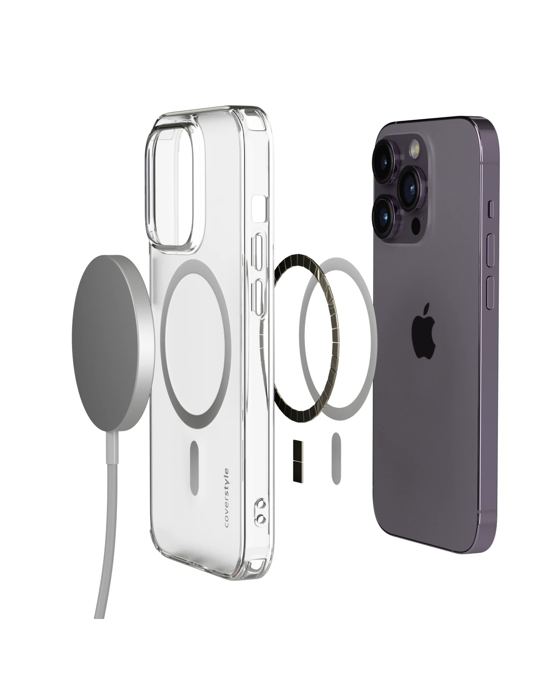 La custodia è realizzata in policarbonato opaco anti-ingiallimento nella parte posteriore, invece nella parte laterale è realizzata in TPU trasparente anti-ingiallimento, con annessa la compatibilità con la ricarica MagSafe di Apple attraverso un sistema di magneti.